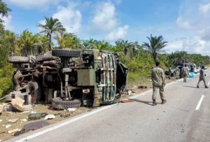 Katanya kejadian dipercayai berpunca apabila lori ATM yang dinaiki empat anggota dam seorang pegawai tentera itu gagal memotong kenderaan lain.