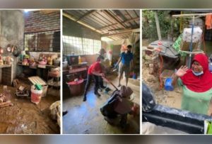 “Hari ni aku turun Hulu Langat Batu 19 untuk tolong apa yang mampu. Rumah makcik ni kami bersihkan sampai mak cik ni tak dapat tahan sedih kami tinggalkan.
