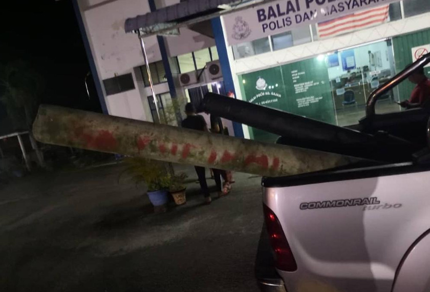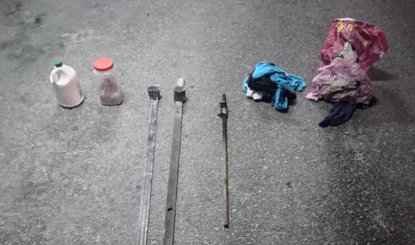 Antara barangan yang dirampas ialah paip PVC yang telah diubah suai, paip simen yang telah diubah suai, kayu pencucuh, kayu yang telah diubah suai bersambung mangkuk keluli di hujungnya dan bekas plastik mengandungi serbuk warna putih disyaki karbaid.