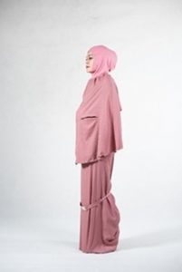 Rekaan ini juga didatangkan dengan beg, serta bahagian telekung atas boleh dijadikan khimar.